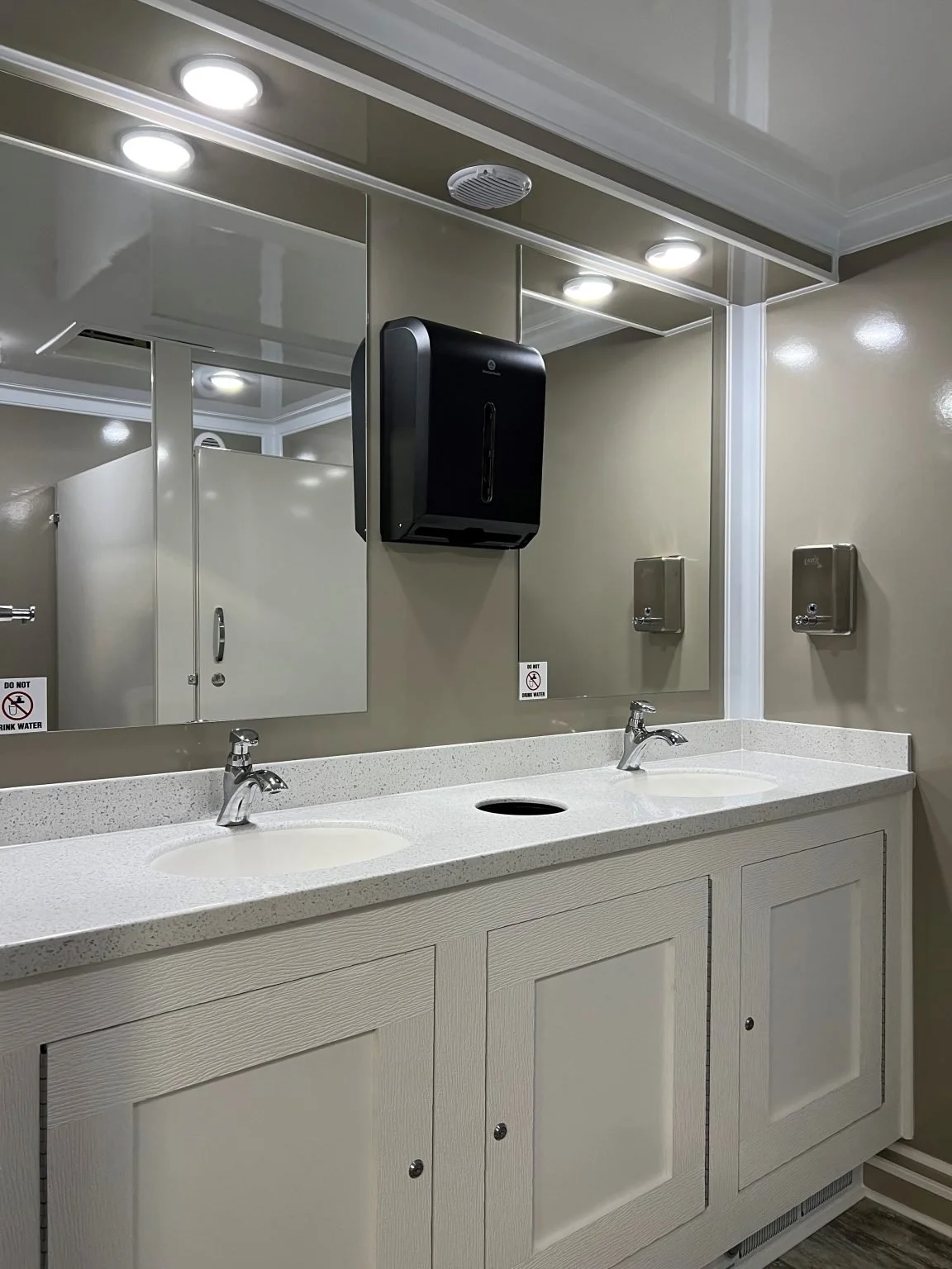 Our luxury restroom trailers are built to impress—with flushing toilets, running water, full vanities, climate control, and spotless modern interiors. From a lakeside wedding in Granbury to a summer concert on the square, your guests will stay comfortable and refreshed.